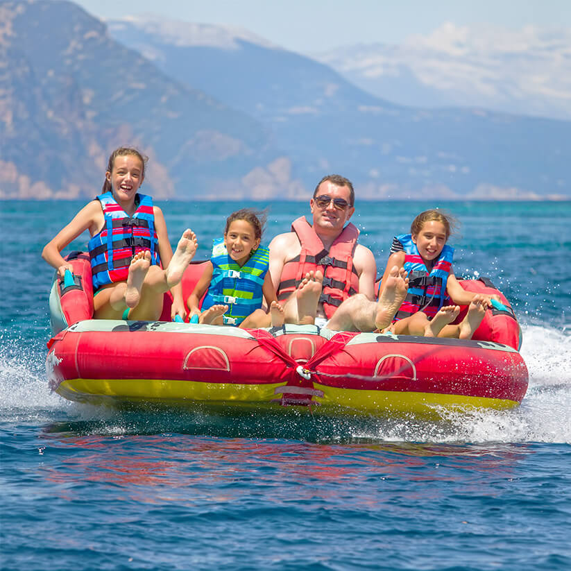 The donut ride is a thrilling water adventure perfect for families and friends seeking an unforgettable experience.Whether you're a thrill-seeker or just looking for some fun in the sun, the donut ride offers endless laughter and excitement. It's the ideal activity to bond with loved ones and create lasting memories.
